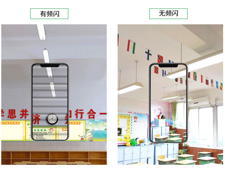 频闪和蓝光危害是视力健康的两大杀手,不仅可能引起头痛、失眠等情况,还有可能引起眼疲劳、黄斑病变等。选用华辉led护眼教室灯和led护眼黑板灯,无频闪、无蓝光危害,光线柔和明亮,呵护视力!